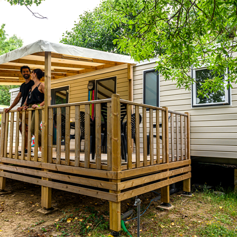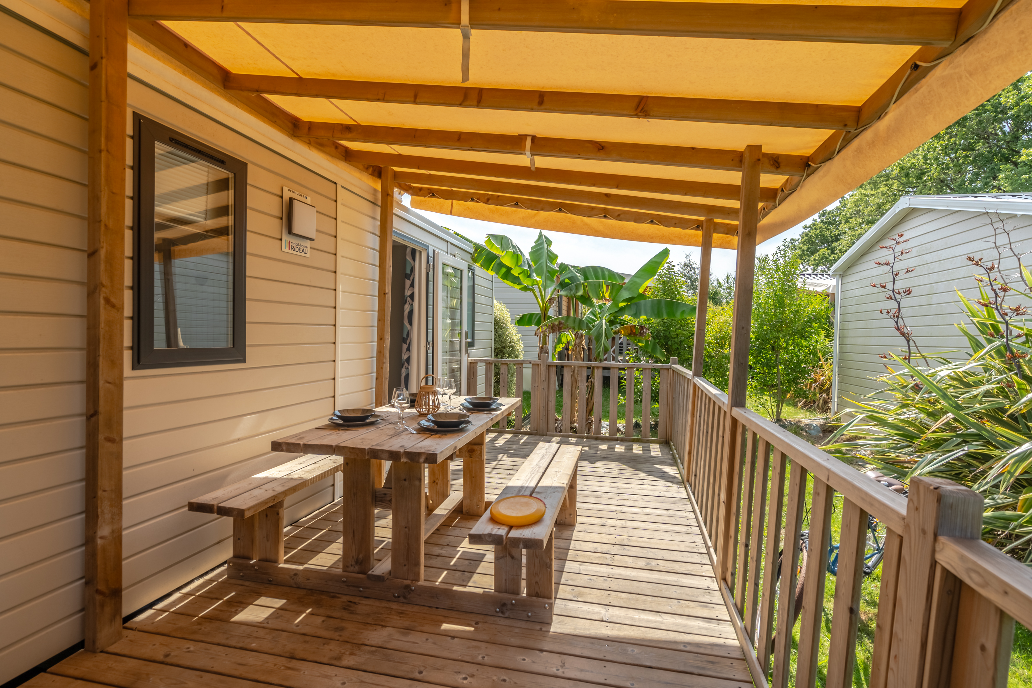 - Large semi-covered wooden terrace
