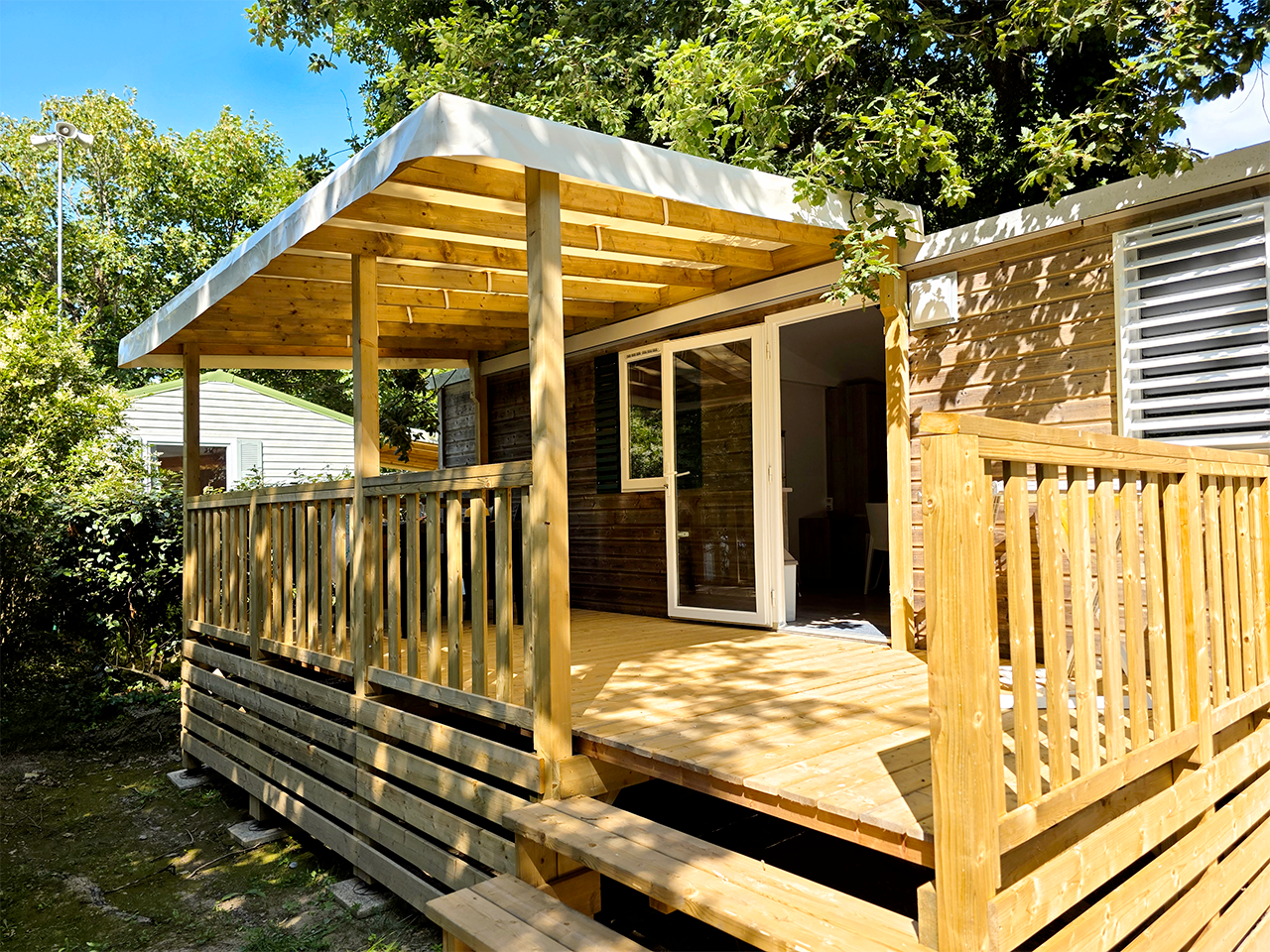- Terraza de madera semicubierta