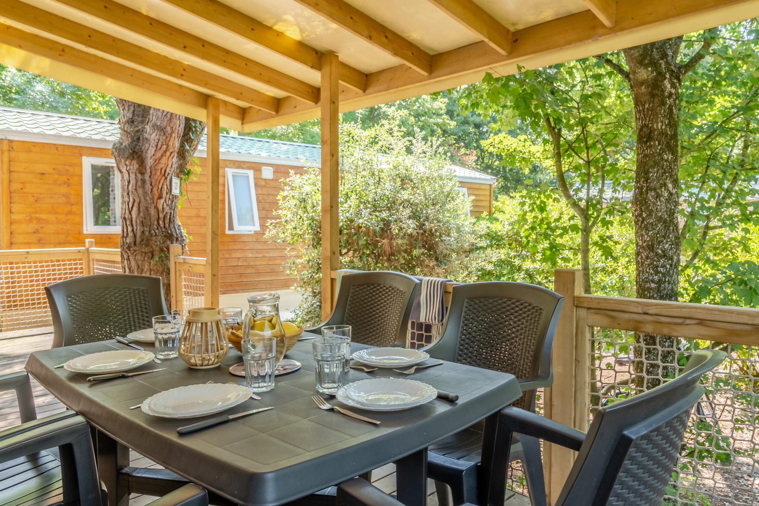 - Half-overdekt houten terras